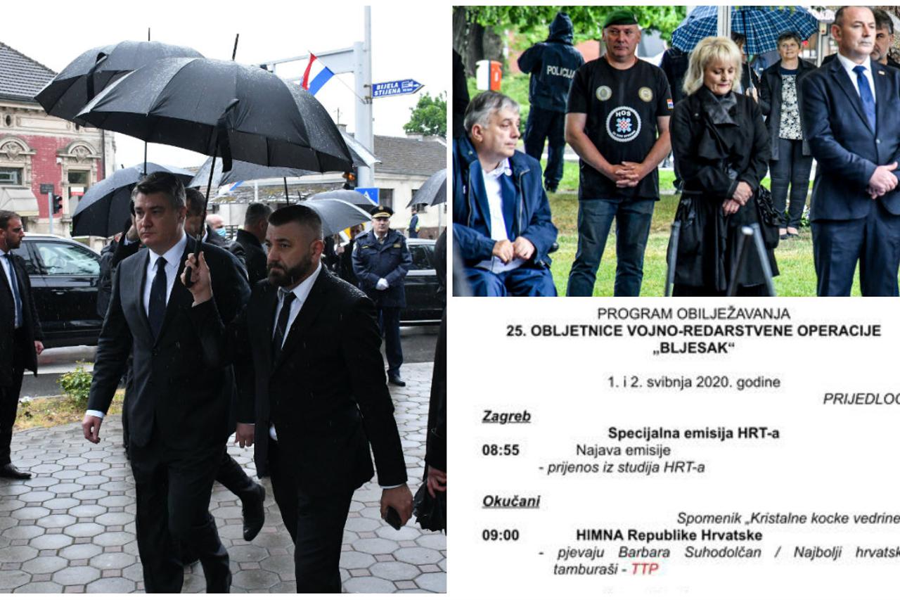Međutim na Pantovčaku kažu da je to laž i manipulacija te da u Ured predsjednika sve do utorka 28. travnja, tri dana prije obljetnice, nije stigao program kako bi točno obilježavanje Bljeska trebalo izgledati. Prema tom programu koji im je stigao u utorak predsjednik Zoran Milanović zajedno s premijerom i predsjednikom Sabora dio je drugog izaslanstva za polaganje vijenca nakon predstavnika obitelji poginulih u Bljesku, Udruga, ratnih zapovjednika…