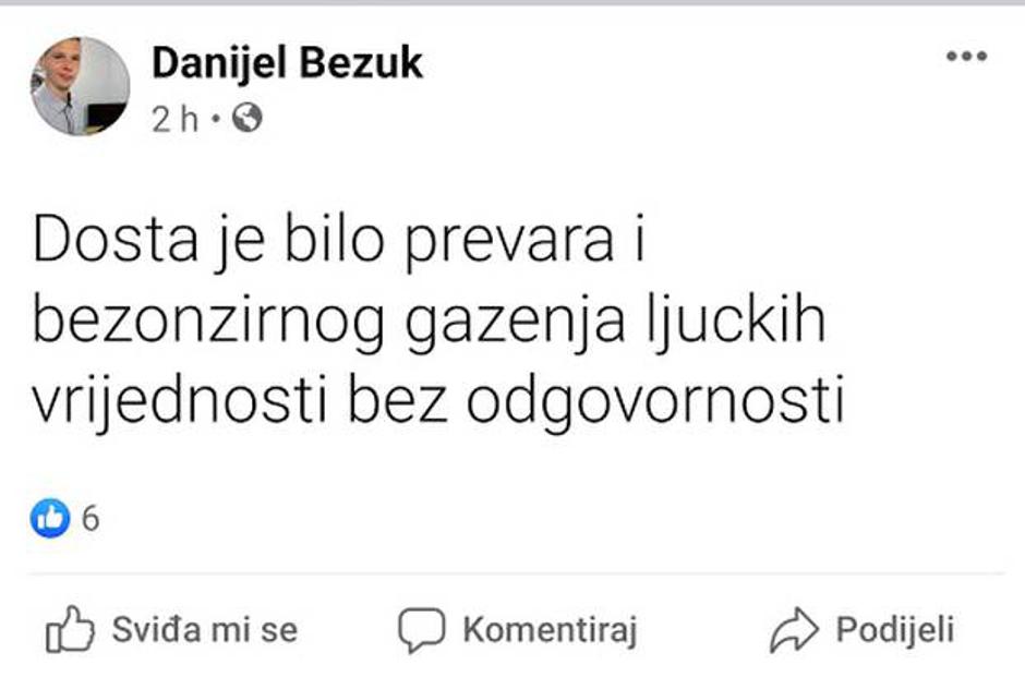 - Dosta je bilo prevara i bezobzirnoga gaženja ljudskih vrijednosti bez odgovornosti - napisao je Danijel samo nekoliko minuta nakon krvavog napada na Markovu trgu.