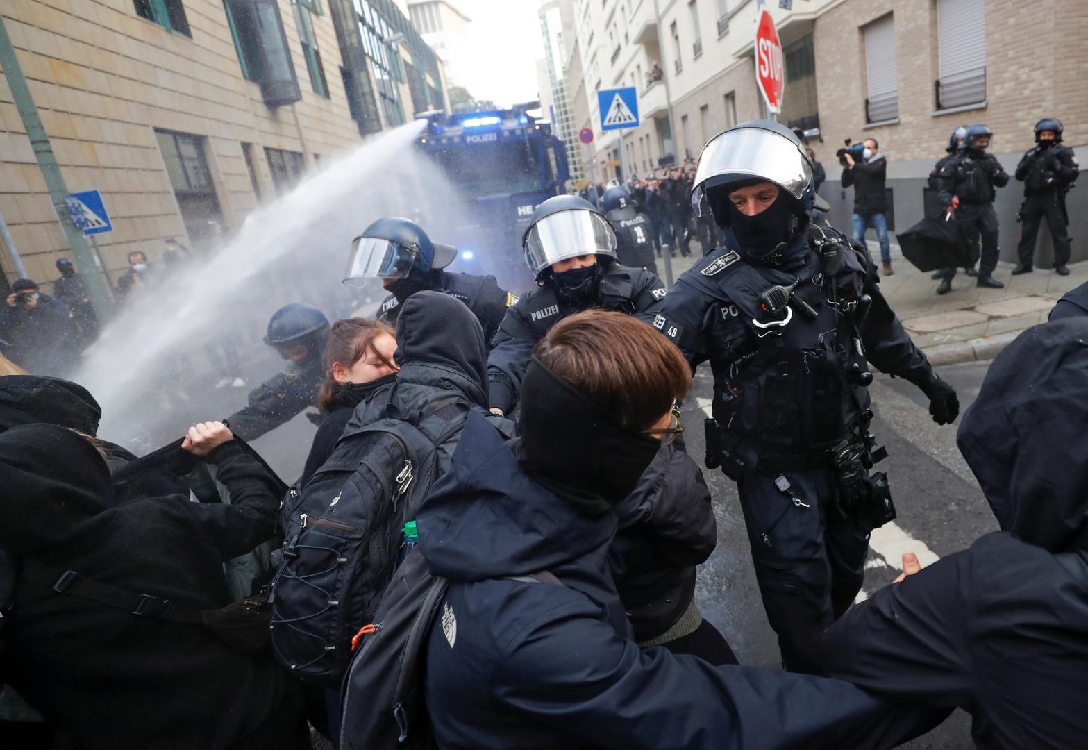 Policija u Frankfurtu vodenim je topom pokušala rastjerati lijevo orijentirane protuprosvjednike koji su se okupili kako bi iskazali neslaganje s demonstrantima koji se protive uvođenju restriktivnih mjera zbog pandemije koronavirusa.