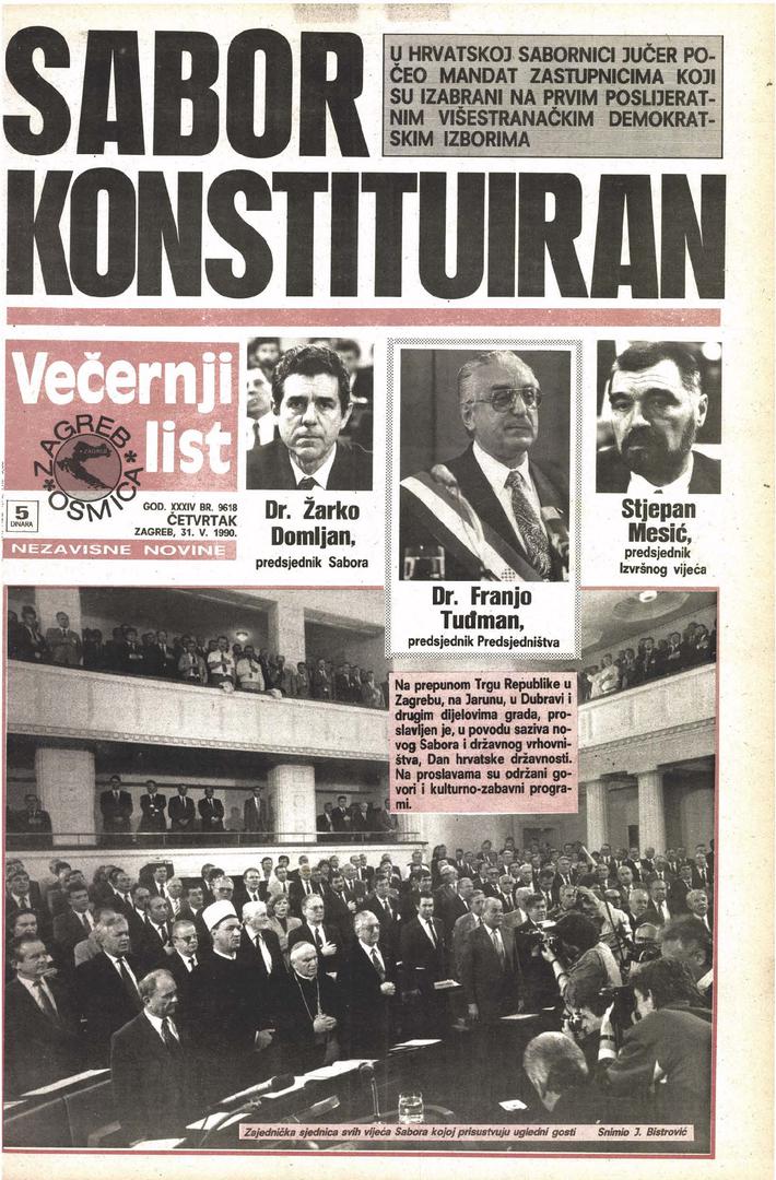 U ovom članku možete pogledati izdanje Večernjeg lista iz 1990. kada je konstituiran Hrvatski sabor.