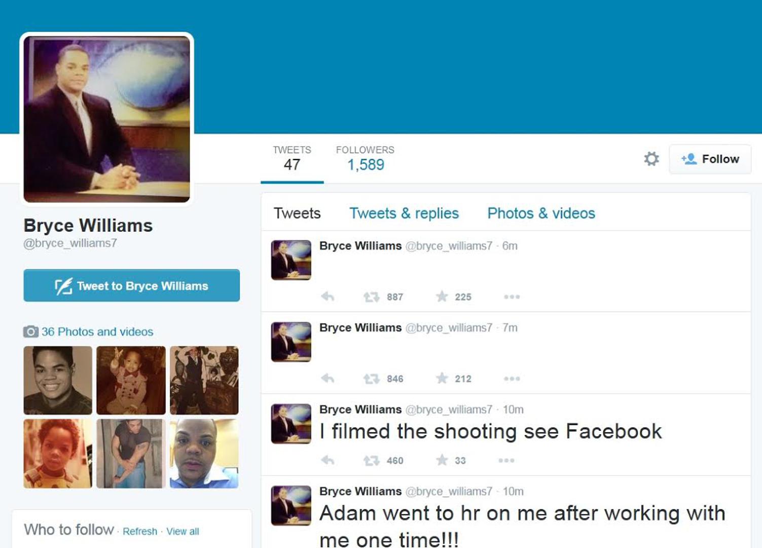 Nedugo nakon krvavog pohoda Na Twitter računu koji je ubrzo uklonjen, napadač je poginulu novinarku optužio za rasističke komentare te napisao kako je snimatelj koji je poginuo jednom prilikom uložio primjedbu na njega službi za ljudske resurse. Na Twitteru je objavio i video stravičnog zločina.
