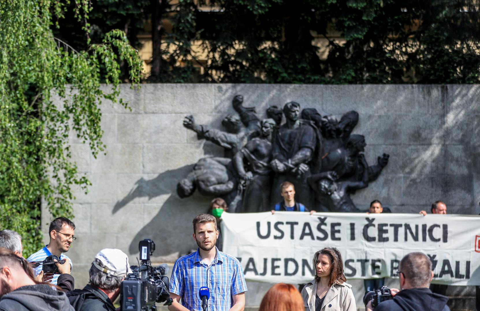Konferencija za novinare RF-a održana je ispred spomenika "Strijeljanje talaca", posvećenog žrtvama fašizma, gdje su članovi stranke razvili transparent s natpisom "Ustaše i četnici, zajedno ste bježali".