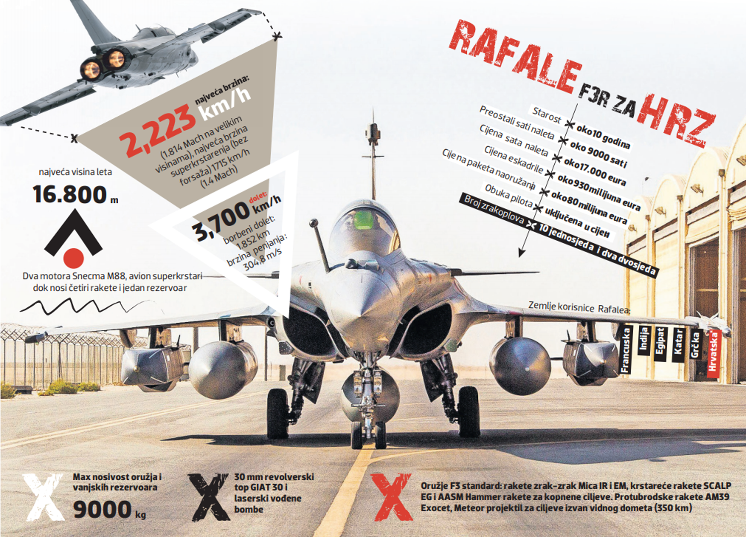 Hrvatska će već početkom 2024. imati najnaprednije borbene zrakoplove u ovom dijelu Europe, izjavio je hrvatski premijer Andrej Plenković i tako najbolje opovrgnuo sumnje onih koji su do kraja postupka smatrali da je nabava aviona zadnje generacije za nas nedostižni san. Iznenađenja ipak nije bilo, kao što je Večernji list najavio prošli tjedan, a “spekulacije” su bile točne, hrvatska je vlada na kraju drugog međunarodnog natječaja za nabavu borbene eskadrile usvojila hrabru odluku i odabrala francuski višenamjenski zrakoplov Rafale F3R! Za 999 milijuna eura, uz obročnu otplatu, Hrvatska će učiniti svjetlosni skok i za dulje vrijeme osigurati puno snažniji stupanj obrane državnog suvereniteta na kopnu, moru i zraku.