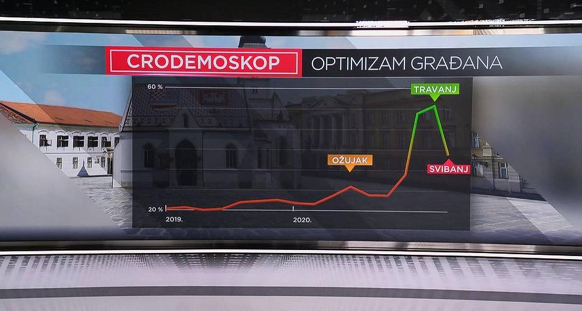 Prošlog su mjeseca, na vrhuncu korona krize, rezultati pokazali nezapamćen skok pozitivne ocjene smjera kretanja zemlje, ali taj optimizam među građanima sada pada. Unatoč boljoj epidemiološkoj situaciji građani očito sada shvaćaju dubinu ekonomskih posljedicama koje tek slijede. Smjer zemlje sada podupire 34,4 posto, dok ih je u travnju bilo više od 51,1 posto.