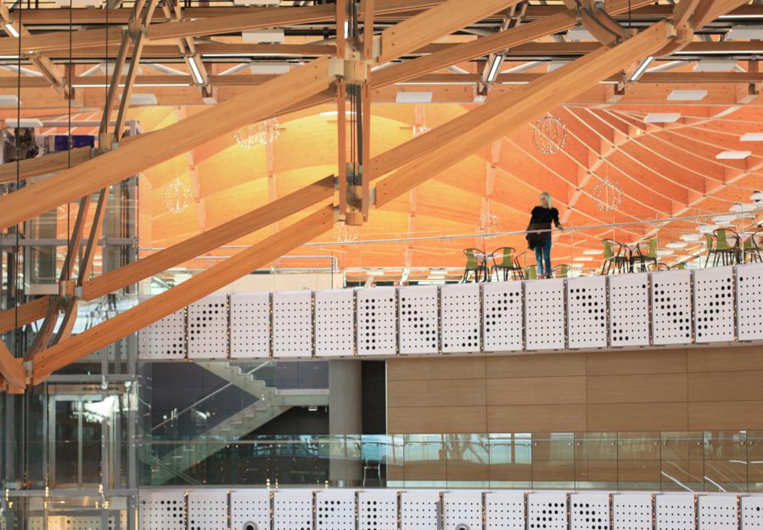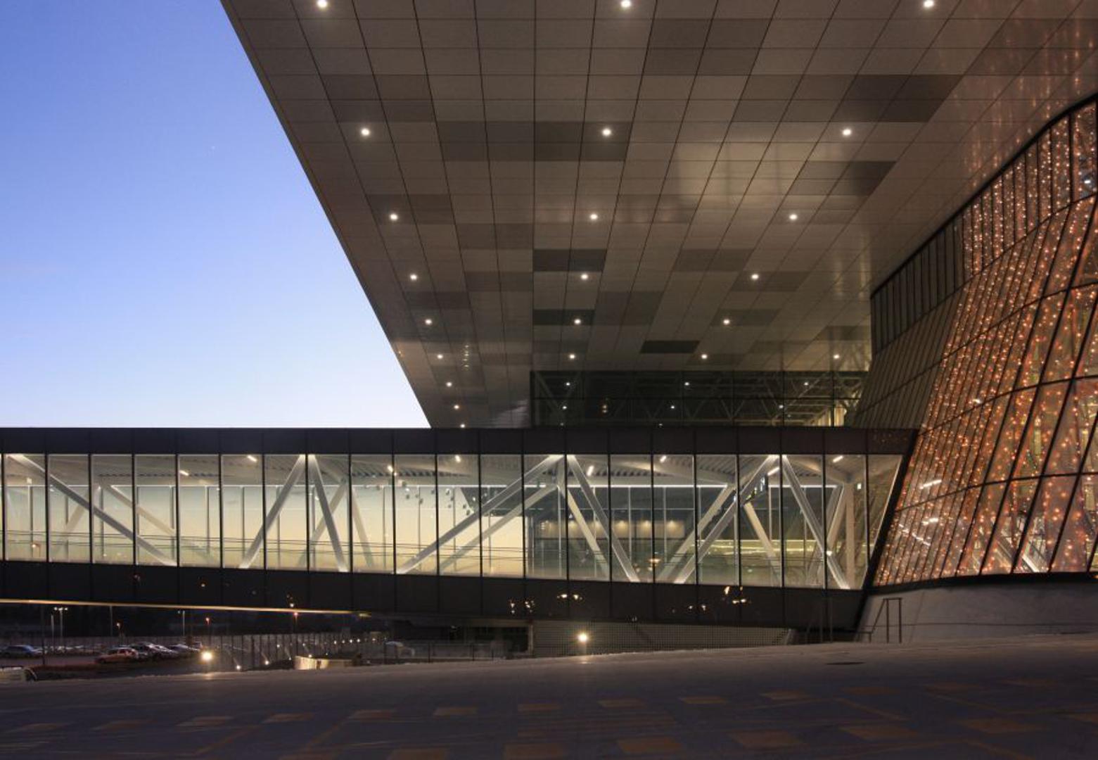 Krovne kupole su prekrivene ETFE membranom. Vanjske nadstrešnice su PTFE tenzilne membrane. Korišteni materijali: beton, čelik i staklo kao funkcionalni i tehnološki suvremeni materijali, te drvo kao prirodni materijal koji u interijer unosi smirujuće tonove. Vanjska vertikalna opna je strukturno staklo s izrazito niskom solarnim g faktorom. Linije kretanja putnika su jednostavne i intuitivne, a centralni ulazni prostor funkcionira kao hub koji pregledno povezuje sve dijelove. Pista, stajanka i putnički terminal sjeverno od državne ceste D409, te autobusni terminal i parking južno od nje povezani su pješačkim nathodnikom s pokretnim trakama.