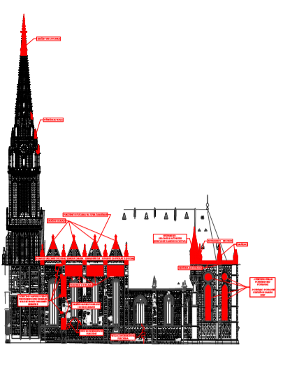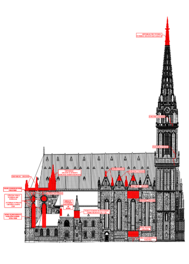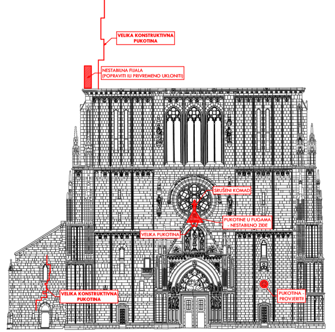 GRAFIČKI PRIKAZ: Oštećeni dijelovi na katedrali