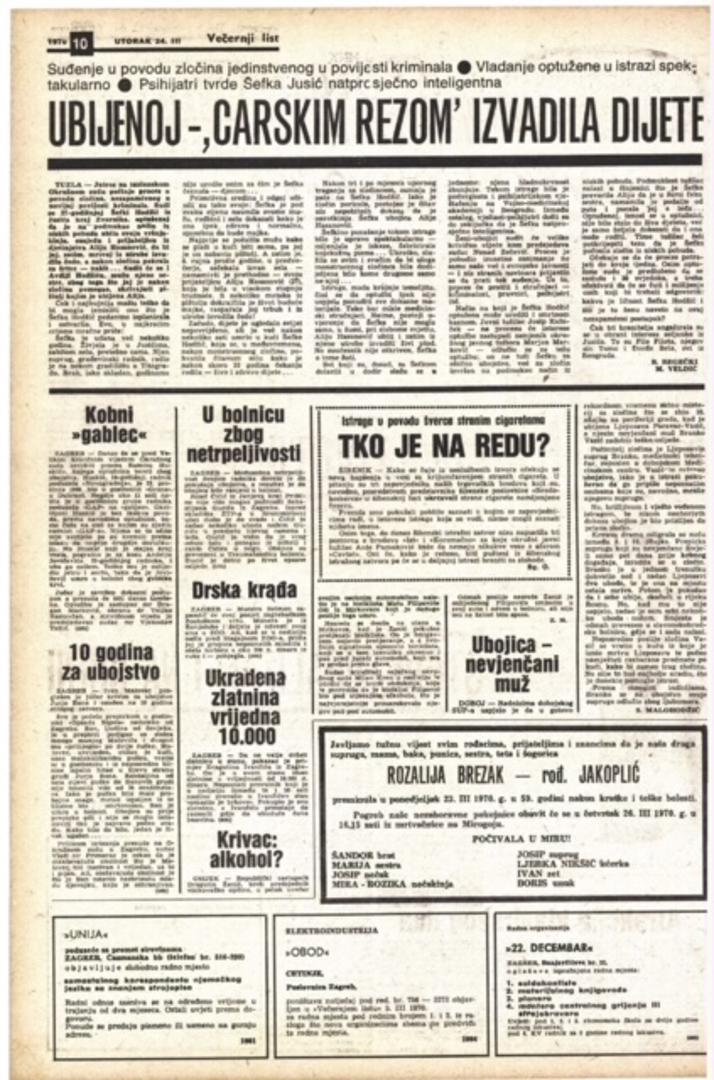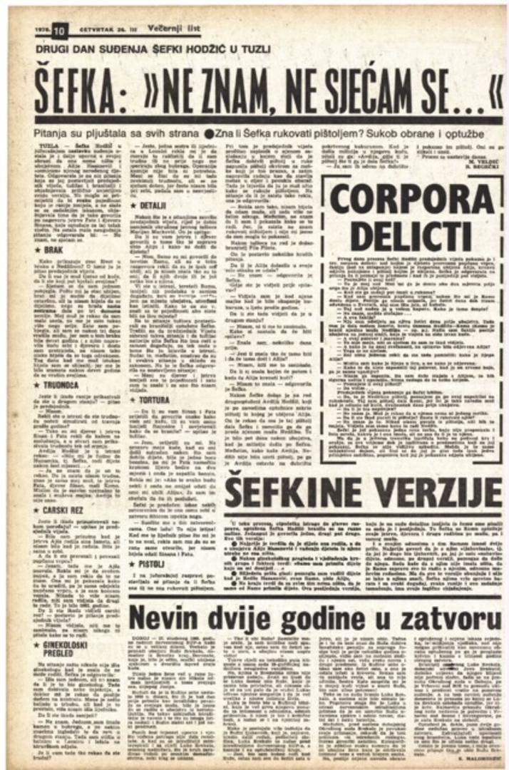 U arhivi Večernjeg lista sačuvani su brojevi originalnih novina te u člancima, koji su objavljeni prije više od pola stoljeća, možete pročitati autentične iskaze Šefke Hodžić i doznati koga je ona optuživala za zločin te što je, na suđenju, 1970., rekla o svom braku, suprugu, simuliranoj trudnoći, pištolju kojim je počinjeno ubojstvo te ostalim detaljima zločina zbog kojeg je žena, iz malog, bosanskog sela, na samom vrhu popisa najmonstruoznijih žena svijeta.