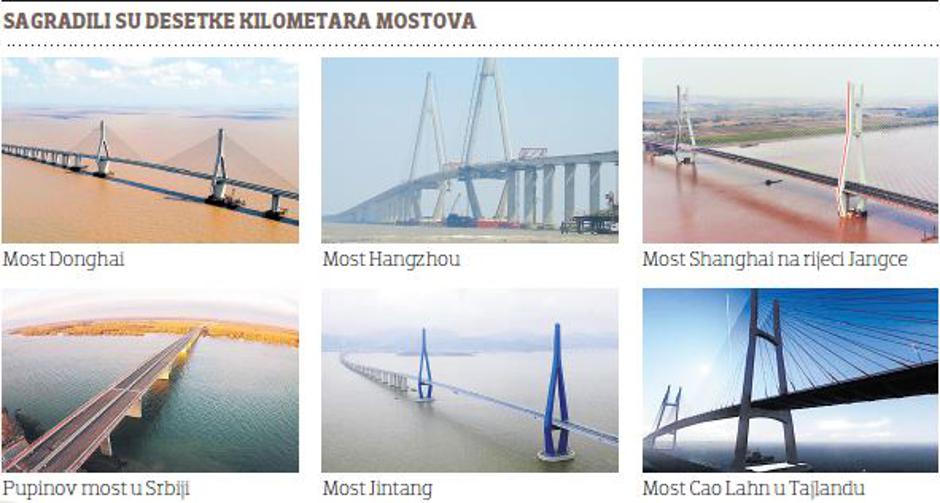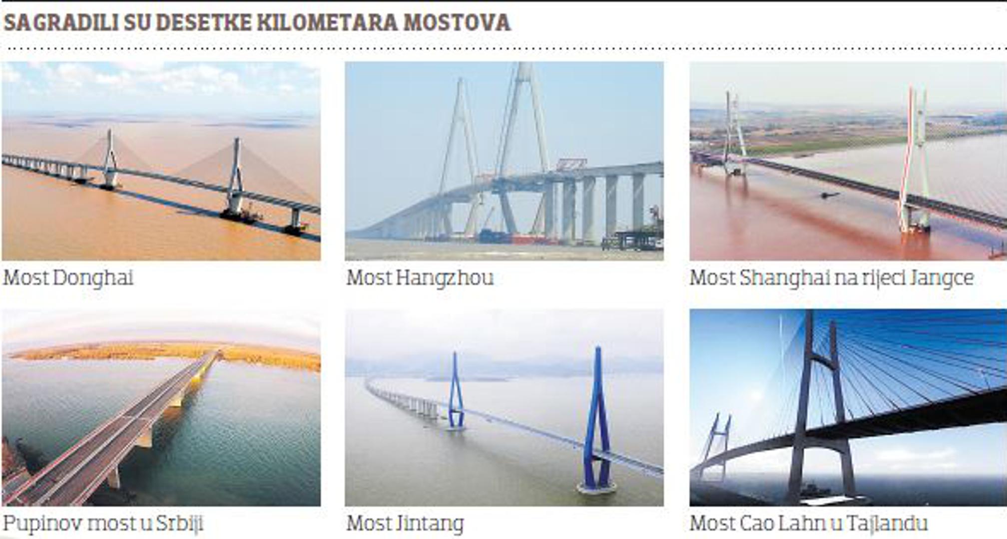 Kinezi su Pupinov mosti sagradili za tri godine. CRBC je dobio i posao gradnje 41 kilometra autoceste Bar – Boljare u Crnoj Gori. Ukupna vrijednost tog posla je 809 milijuna eura, a i taj posao financira se većim dijelom kreditom Exim banke, a manji dio novca daje Crna Gora. Kinezi su se obvezali da će 30 posto od oko 4000 ljudi, koliko će ih biti zaposleno na tom projektu u jeku radova, biti domaći radnici. Autocesta bi trebala biti sagrađena do 2019. Kinezi su poslove u našem susjedstvu dobili izravnim dogovorom s tamošnjim vladama, ali su se za Pelješki most morali izboriti na javnom natječaju, i to za projekt koji s 85 posto iznosa sufinancira Europska unija.