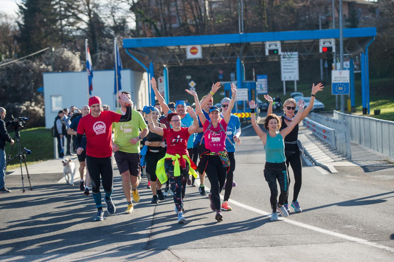 Dobro raspoloženi trkači, članovi Kluba cestovnog i planinskog trčanja iz Samobora, prijepodne su krenuli iz centra Svete Nedelje do Samobora gdje su se kratko okrijepili te potom nastavili prema Brežicama. Granicu u Bregani su protrčali slobodno, jer fizičkih barijera kao i granične kontrole više nema. Tu su se kratko zadržali, nazdravili šampanjcem te nastavili do Brežica.