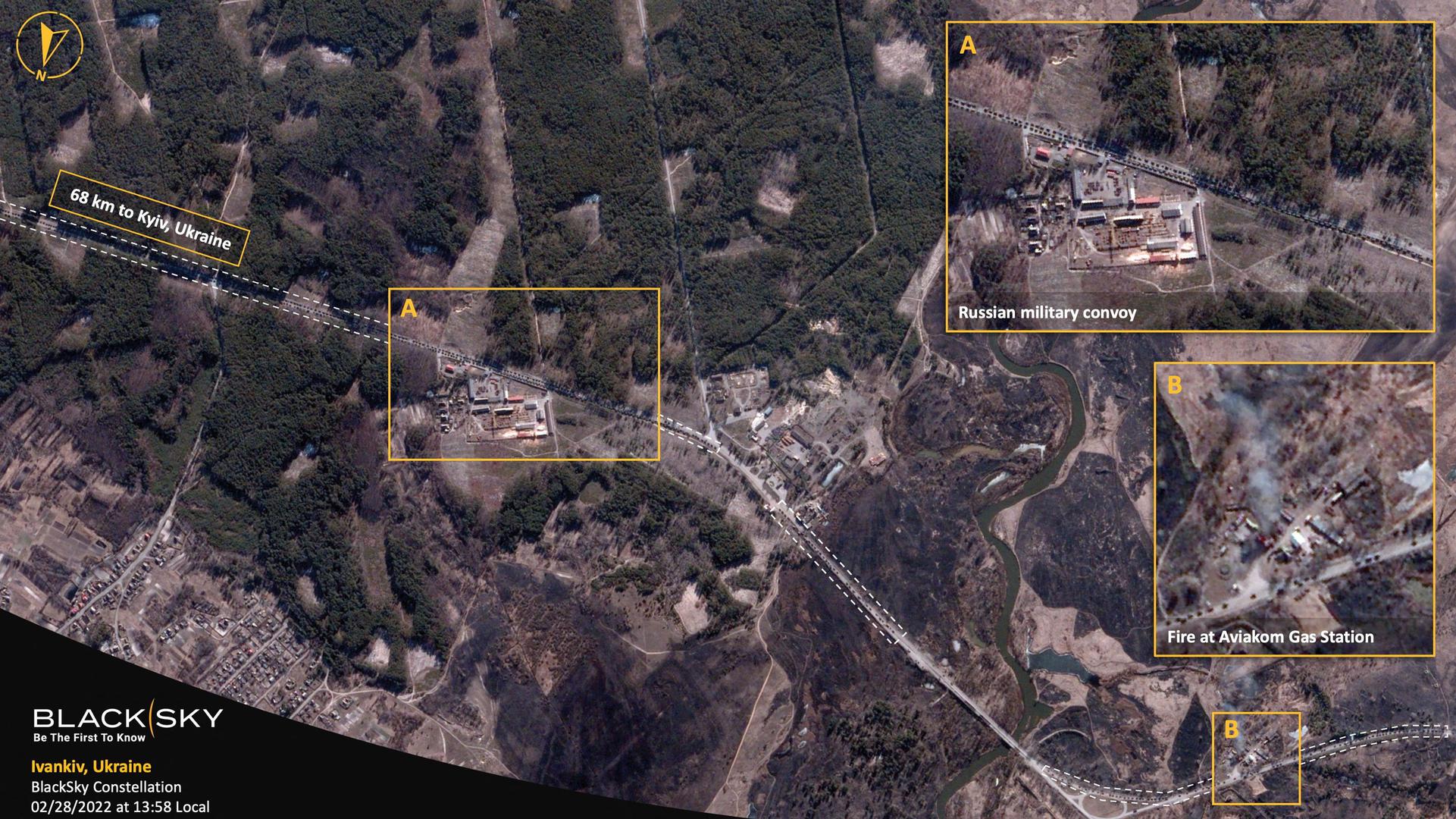 - Konvoj nije dugačak 64 kilometara kako se isprva mislilo, a riječ je o nizu vozila s logističkom opremom razvučen duž glavne autoceste od bjeloruske granice, s ciljem povezivanja s ruskim jedinicama u sjevernom predgrađu Kijeva.