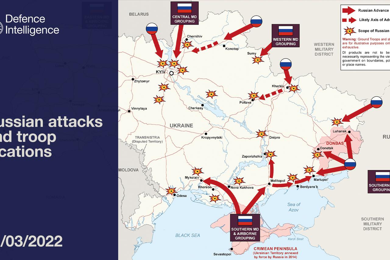 Rusko ministarstvo obrane objavilo je ranije danas kako namjerava napasti ciljeve u Kijevu kojima se koristi ukrajinska služba sigurnosti, a napad bi trebala izvesti oklopni konvoj dugačak više desetaka kilometara koji se koji se približava glavnom gradu Ukrajine krećući se sa sjevera zemlje u smjeru juga.
