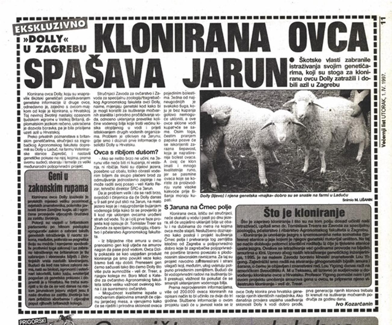 Nakon što su škotske vlasti, svojim genetičarima, zabranile istraživanje, za kloniranu ovcu Dolly zatražen je i dobiven azil u Hrvatskoj, te je s majkom-ovcom od koje je klonirana, preselila u Zagreb, objavio je „ekskluzivno“ Večernji list, 1997.