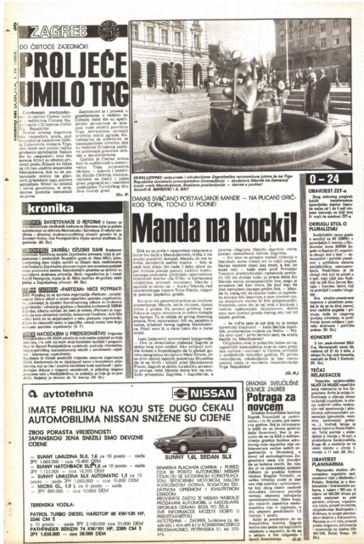 „Ekskluzivna vijest“, 1989., bila je postavljanje skulpture legendarne Mande na manduševačko vrelo.
