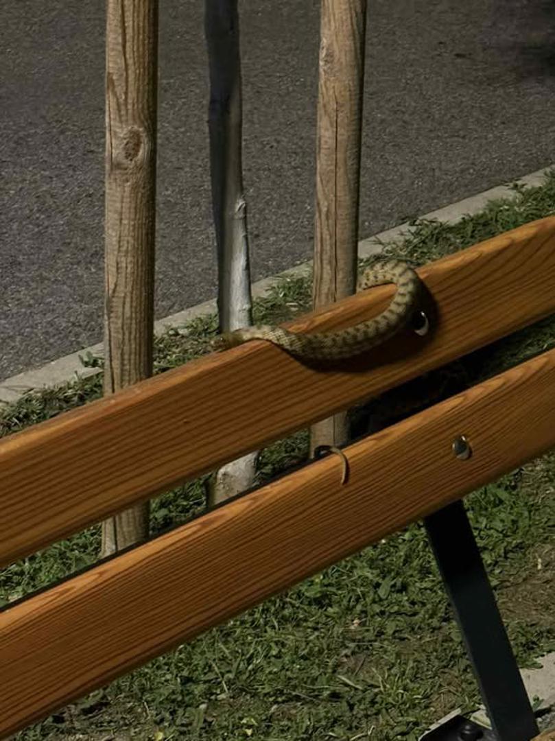 Neugodno bi se iznenadio netko da je sjeo sinoć na jednu od klupa na osječkoj promenadi u Donjem gradu. Jer tu je klupu već bila zauzela zmija, koja se omotala oko naslona klupe.