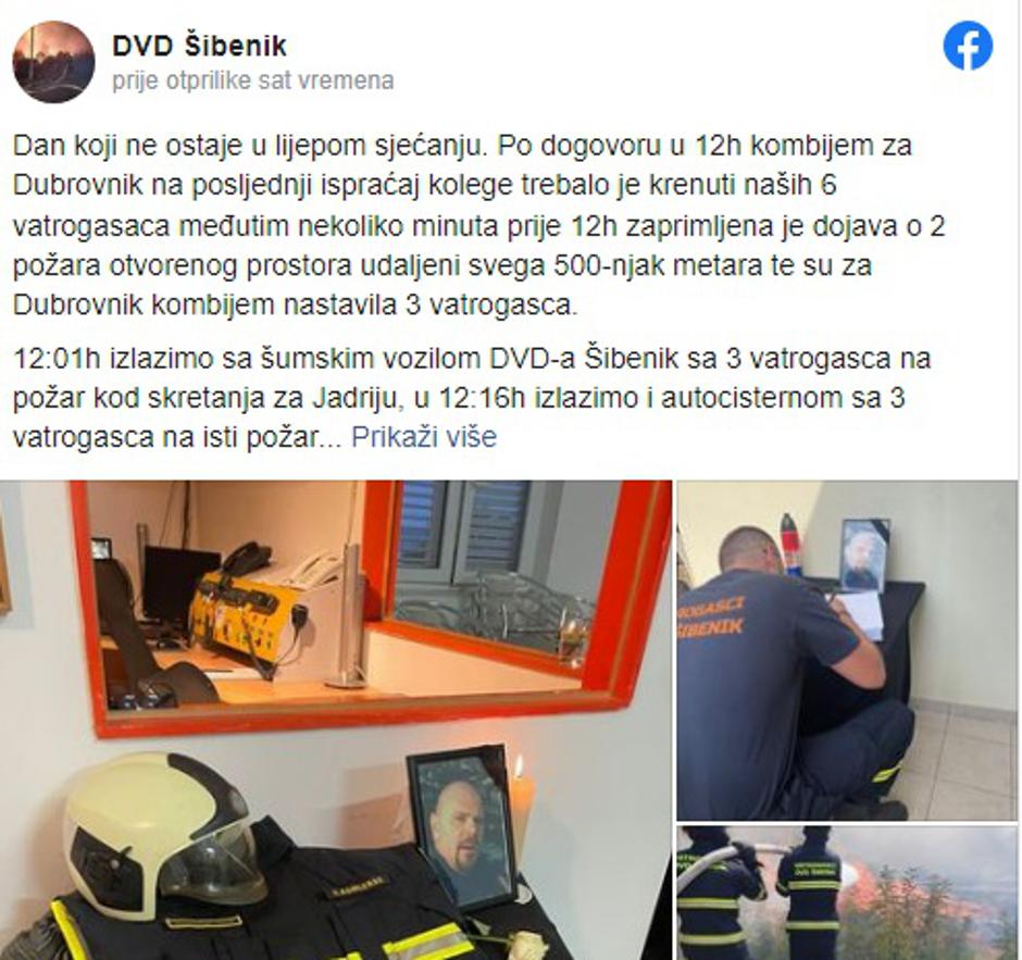 Gorane neka ti je vječna slava i hvala!", objavili su nam svojoj Facebook stranici šibenski vatrogasci.