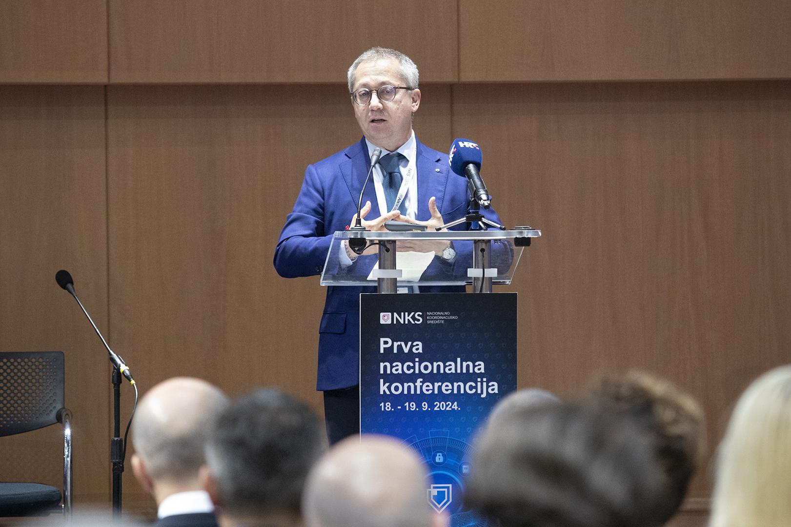 Prvi dan ove međunarodne konferencije u organizaciji NKS-a bio je posvećen regulatornim okvirima i strategijama s ciljem jačanja kibernetičke sigurnosti, pri čemu su svoje uvide podijelili vodeći stručnjaci iz različitih sektora. Posebnu pozornost privuklo je izlaganje Luce Tagliarettija, izvršnog direktora Europskog stručnog centra za industriju, tehnologiju i istraživanja u području kibernetičke sigurnosti (ECCC), koji je predstavio europske trendove i strategije te naglasio važnost suradnje između nacionalnih centara s europskim.