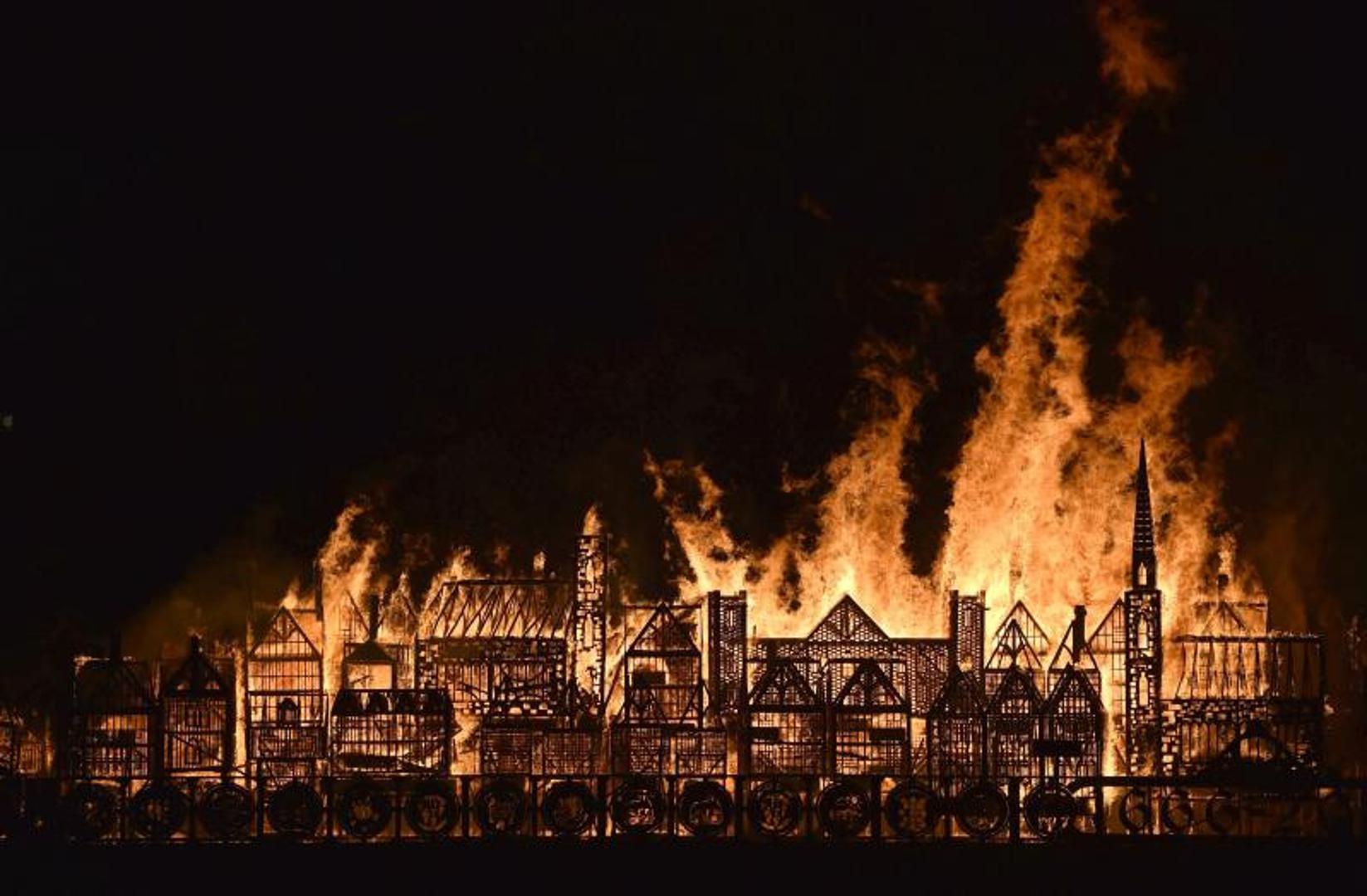 Prije 350 godina četiri paklena dana obilježila su London kada je nezapamćeni požar zahvatio grad. U sjećanje na tragediju sinoć je na obali rijeke Temze gorjela 120 metara visoka replika grada, autorsko djelo američkog umjetnika Davida Besta.