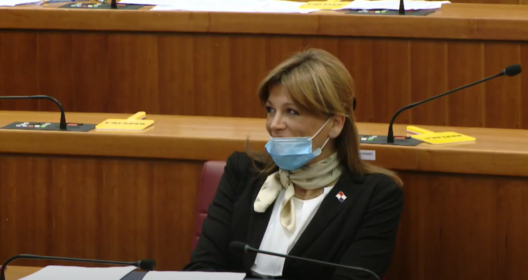 Jandroković je zastupnici dao opomenu, na što je ona rekla: "Povreda poslovnika, dakle izravno me vrijeđate. Uporno pokušavati nametnuti tezu da su svi isti. Nitko nije sporan tko je na pošten i zakonit način od Janafa dobio posao i na Janafu zarazio. Sporni ste vi koji ste iz kluba izvlačili milijune i skrivali ih u prtljažnike glavnih državnih odvjetnika ili njihovih zamjenika".