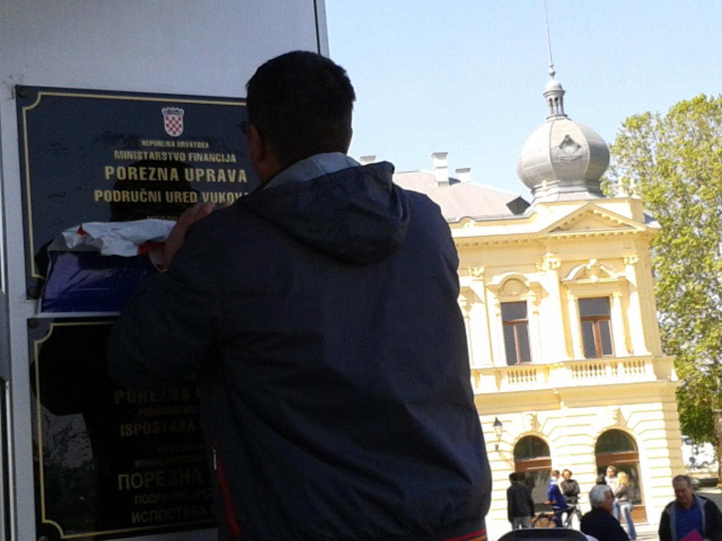 Tijekom dopodneva, uz osiguranje policije, započeto je sa skidanjem naljepnica hrvatske državne zastave prelijepljenih preko ploča na državnim institucijama koje su ispisane latiničnim i ćiriličnim pismom u Vukovaru.