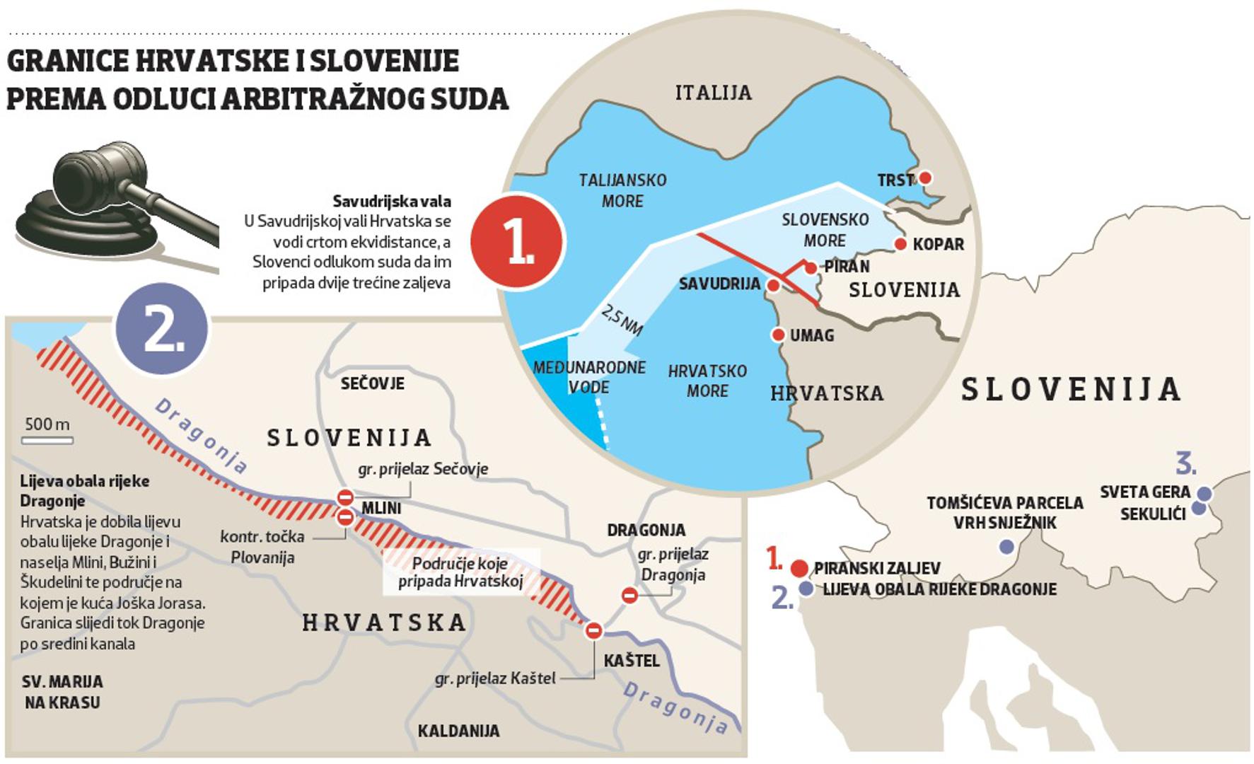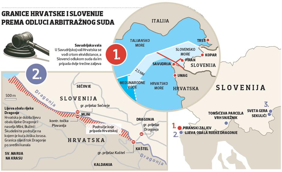 Prvenstveno je riječ o kopnu gdje je arbitražni sud redom udovoljio hrvatskom zahtjevu da granična crta slijedi katastarsku granicu. No kako će Slovenija primjenjivati odluku kad je svjesna da za provedbu treba suglasnost i hrvatske strane? Slovenski je premijer Miro Cerar na sastanku u Zagrebu sa svojim hrvatskim kolegom Plenkovićem kazao da će je “provoditi gdje nije potreban pristanak Hrvatske”. Pitanje svih pitanja je hoće li se Slovenija pritom koristiti silom, posebice za razgraničenje u Savudrijskoj vali gdje se Hrvatska vodi crtom ekvidistance, a Slovenci odlukom suda da im pripada 2/3 zaljeva. Za iskusne međunarodne pravnike nema dvojbe, takvo što je apsolutno nedopustivo.