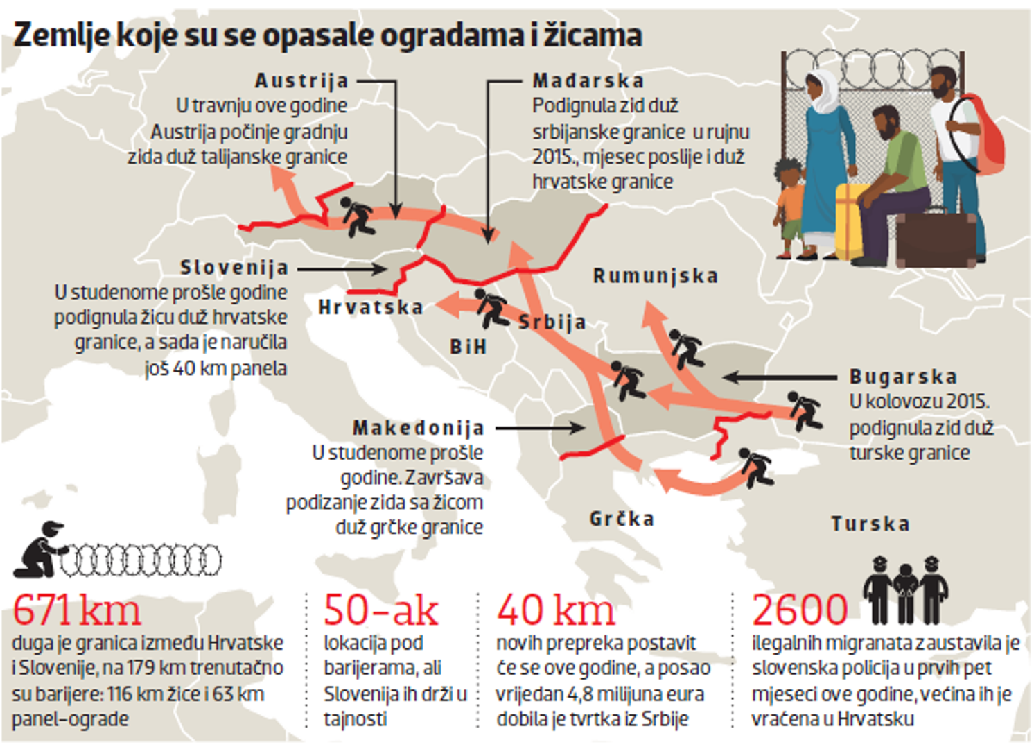 U Sloveniji se boje da bi ih zatvaranje granice s Italijom moglo pretvoriti u “džep” za tisuće migranata. Slovenska je policija u prvih pet mjeseci privela oko 2600 ilegalnih migranata, oko 1400 više nego u istom razdoblju lani. Najviše je Pakistanaca, Alžiraca i Marokanaca. U Hrvatsku je vraćeno 1500 migranata.