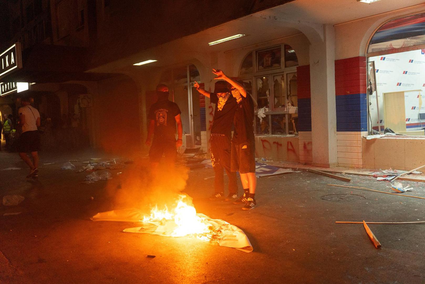 Većina mlađih prosvjednika koji su sudjelovali u tom napadu bila je maskirana kapuljačama, a u stranačkim prostorijama nije bilo pristaša SNS-a odakle su srijedu ispaljivali pirotehnička sredstva ka prosvjednicima.