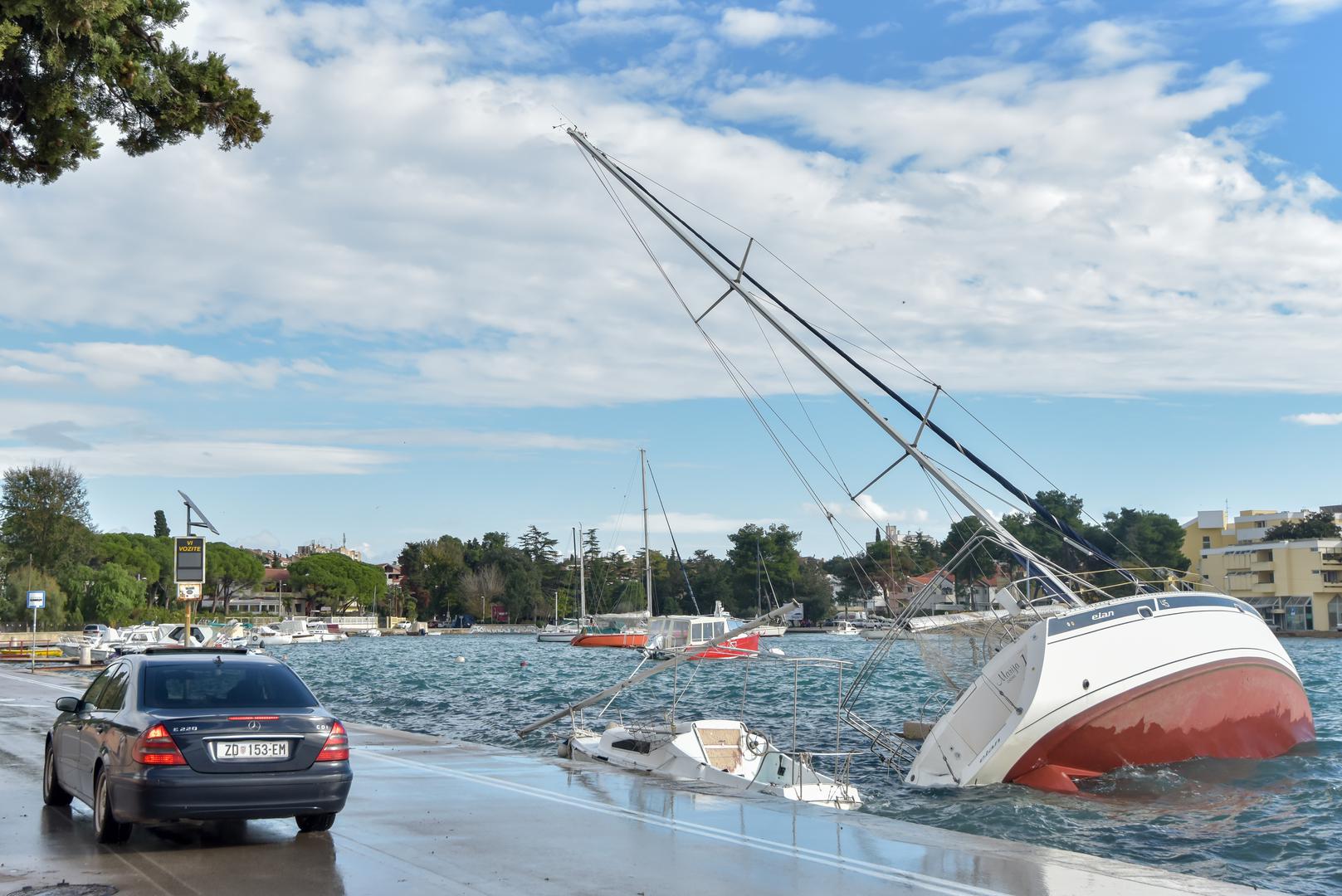 Snažno nevrijeme oštetilo rivu u Zadru, nasukana jedrilica i manji brod