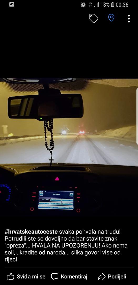 Baba se čudi jer na cesti ima po procjeni 2 cm snijega. Mislim da ovi u HAC-u bi joj trebali staviti ralicu na raspolaganje 24 sata pa kad njoj prdne ralica naprijed a ona iza. Neka to bude neka ralica što povuče na 130 na sat jer inače će se žaliti da može eto samo 80 na sat voziti a platila autocestarinu. VL morate li svaku glupost objaviti?