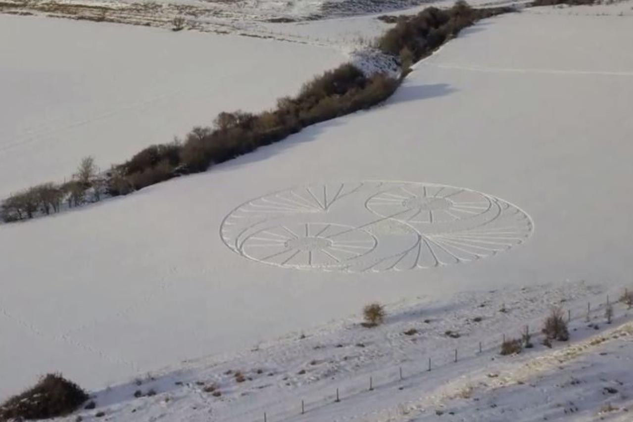 Pedesetogodišnji Chris Barrow uhvatio je dio polja na kojem je bilo ucrtano lice sove. Savršeno simetrična slika stvorena je od matematički preciznih oblika ucrtanih u snijeg. Uz simbol ptice, mogu se zamijetiti i tragovi sitnih stopa koje vode dalje od "crteža".