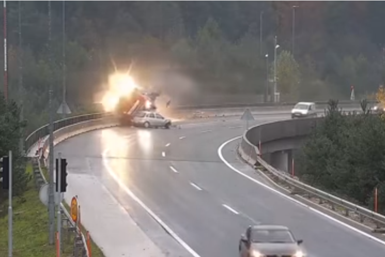 Vozač skutera za dlaku je izbjegao smrt nakon što je kamion naglo skrenuo ulijevo i okrznuvši rubnik naletio na vozača te produžio u trak u kojem su se automobili kretali u suprotnom smjeru. Udario je u jedan automobil, dok se drugi, baš kao i vozač skutera, izvukao za dlaku. I dok je vozač samim čudom ostao neozlijeđen, skuter je potpuno smrskan.
