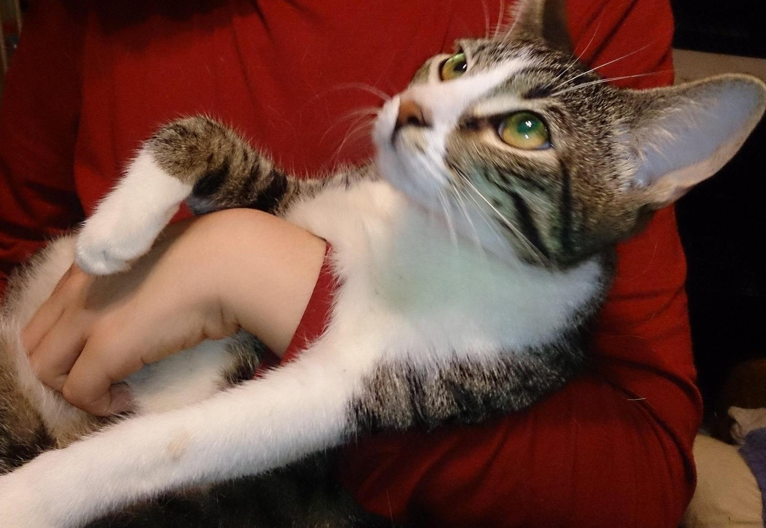 Njofra - Ima dvije i pol godine, ljude obožava, a posebno djecu jer uživa u njihovu maženju.Udomiteljima dolazi kastriran i uredno cijepljen.