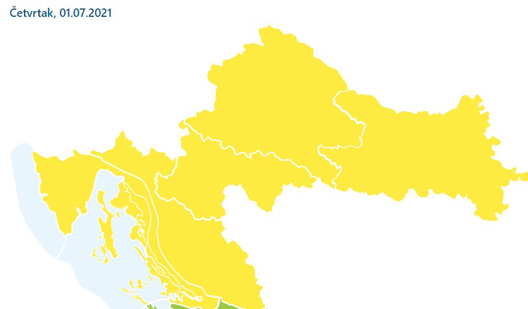 Upaljen je žuti Meteoalarm za većinu dijelova Hrvatske.