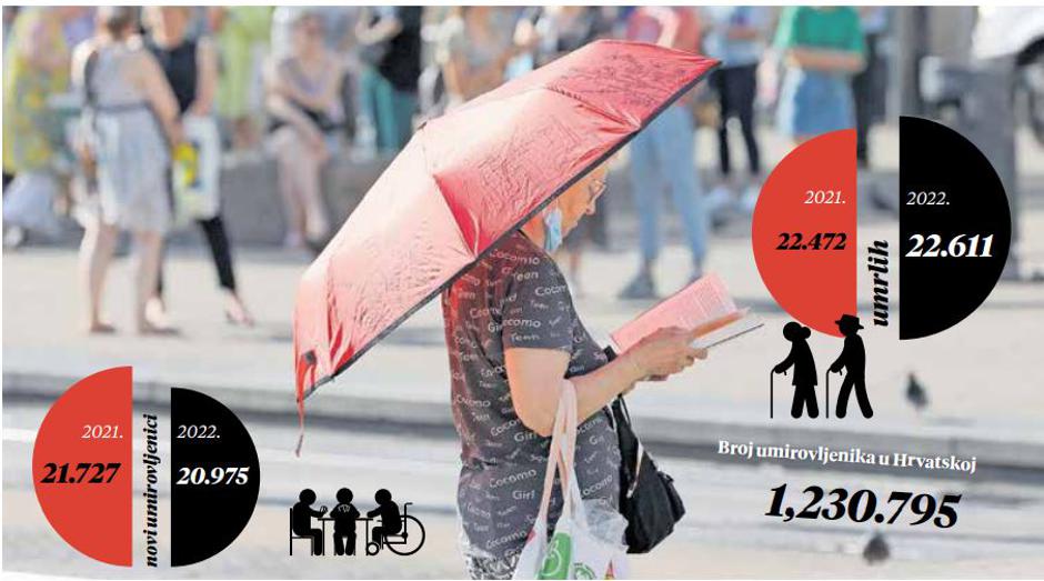 Korona u prvom dijelu godine nije bila vodeći javnozdravstveni problem, no neovisno o tome zadržala se velika smrtnost starije populacije. Nakon što je protekle dvije godine dostignut rekord po broju umrlih umirovljenika, taj crni niz nastavljen je i u ovoj godini s jednako snažnim intenzitetom. U prvih pet mjeseci ove godine umrlo je 22.611 korisnika mirovina – što je 136 umrlih osoba više nego u istom periodu prošle godine.
