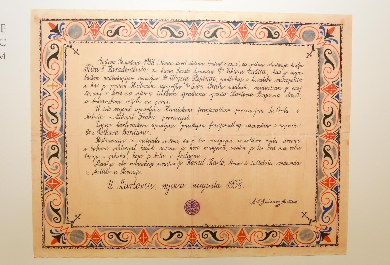– Tome smo se nadali, to smo i očekivali jer je u to vrijeme bilo uvriježeno stavljati svitke, vremenske kapsule u one dijelove građevina koji su dograđivani ili preuređivani. Ispalo je da je svitak koji smo pronašli u jabuci zvonika iz nama bližeg vremena, iz 1938. godine. Uopće nismo znali, niti imali dokumentaciju o tome, da je u to vrijeme bilo nekih radova na zvoniku crkve – kazala je Sonja Kočevar, pročelnica karlovačkog Konzervatorskog odjela Ministarstva kulture i medija, nakon što je sadržaj pronađene vremenske kapsule iz jabuke križa karlovačkog zvonika otvoren pod budnim okom konzervatora iz Hrvatskog državnog arhiva i predstavljen javnosti.