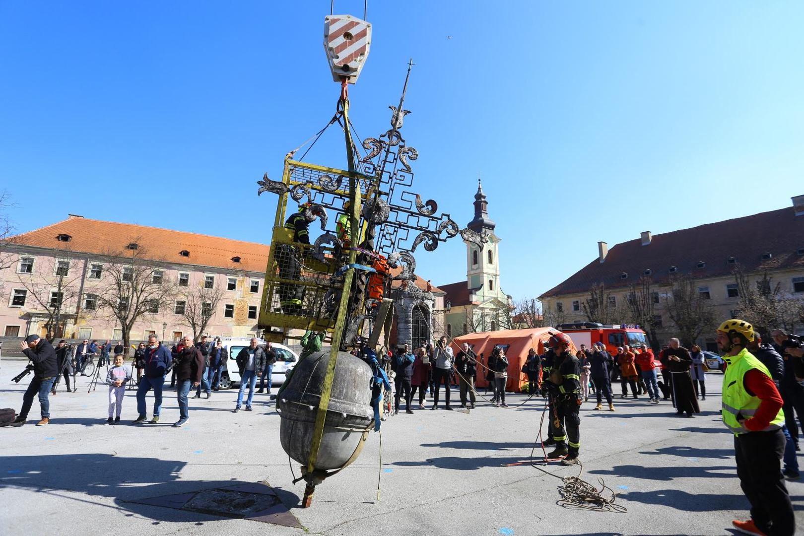 U zapisu na njemačkom piše i tko su i odakle bili majstori koji su obnavljali crkvu te popis osoblja djevojačke škole. Drugi dokument iz 1883. original je na hrvatskom. On pak otkriva da je to bilo vrijeme vladavine Franje Josipa I., bana Josipa Jelačića i kardinala Haulika. Navedena su i imena gimnazijskih profesora, a dosta su detaljno popisani i gradski činovnici iz tog vremena. Nakon obnove križa i zvonika, ali i crkve koja je stradala u potresu, nova će vremenska kapsula biti postavljena s istim podacima.