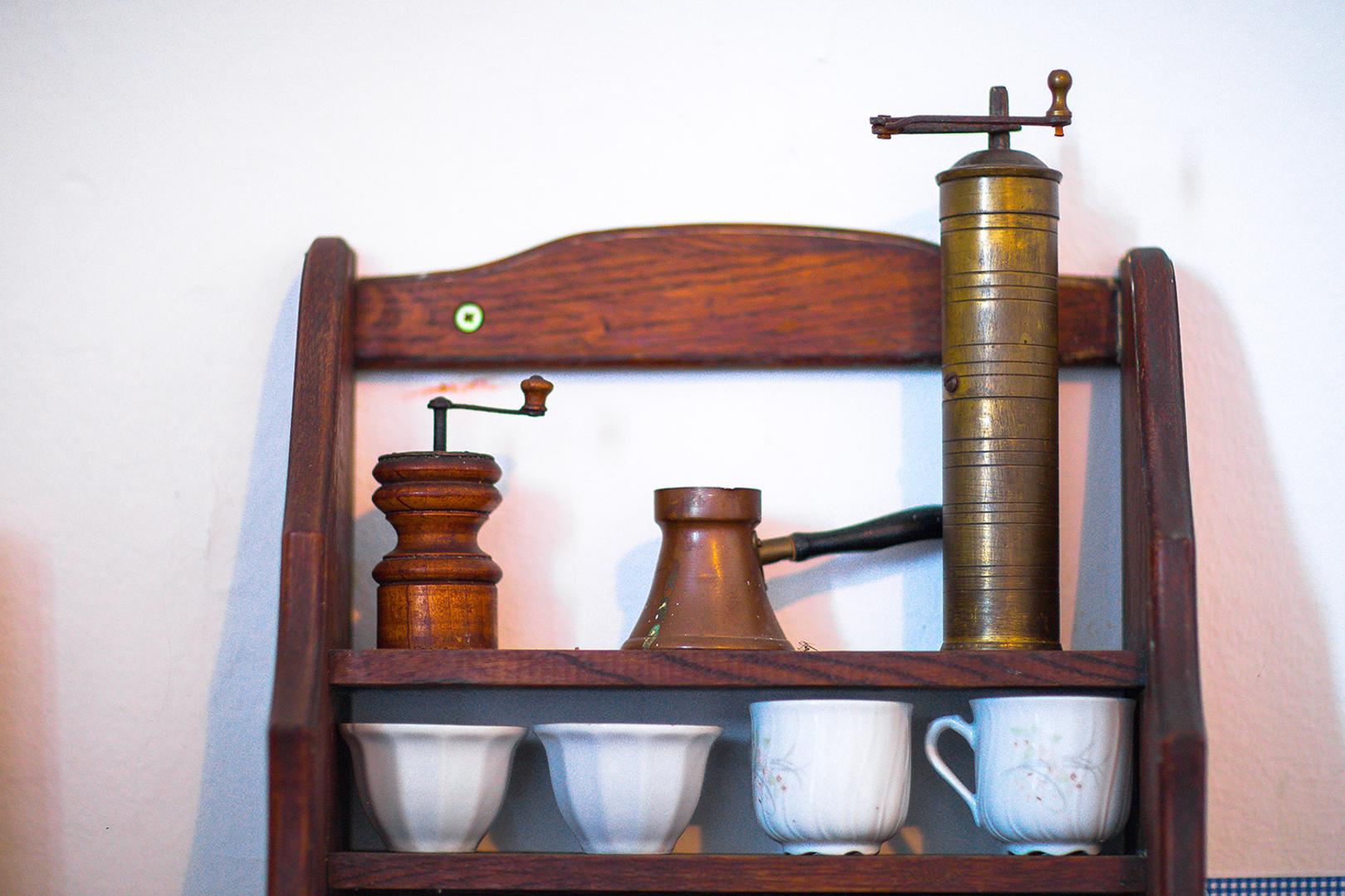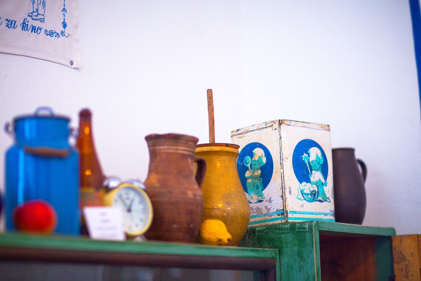 Kuhinjski interijer nadopunjuju limeni tanjuri, zdjele i pribor za jelo iz davnina, kao i lampe na petrolej.
