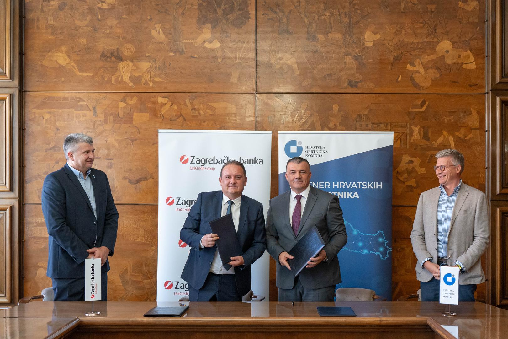 Čelnici Hrvatske obrtničke komore i Zagrebačke banke su u srijedu, 11. rujna 2024., potpisali Sporazum o suradnji čime obrtnici i njihovi zaposlenici ostvaruju posebne uvjete ugovaranja proizvoda i usluga u Banci, a u cilju olakšavanja, poticanja i unaprjeđenja njihovog poslovanja. Posebne pogodnosti odnose se na povoljnije uvjete financiranja, transakcijskog poslovanja te kartičnog poslovanja.