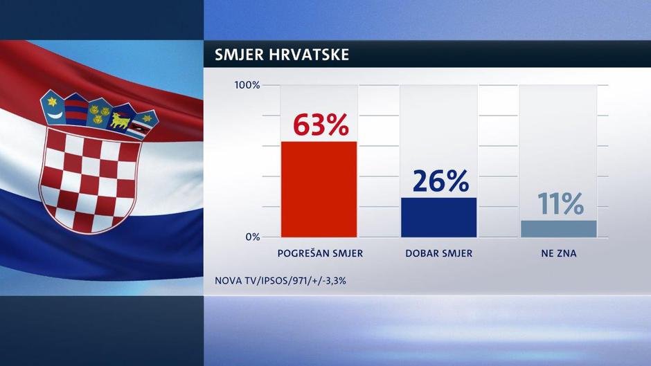 63 posto građana misli kako zemlja ide u lošem smjeru, a njih 26 posto pak misli da ide u dobrom. No možda je utjeha Vladi kako već treći mjesec nema velikog rasta pesimizma, ali ni optimizma. Stabilno smo pesimistični već treći mjesec.