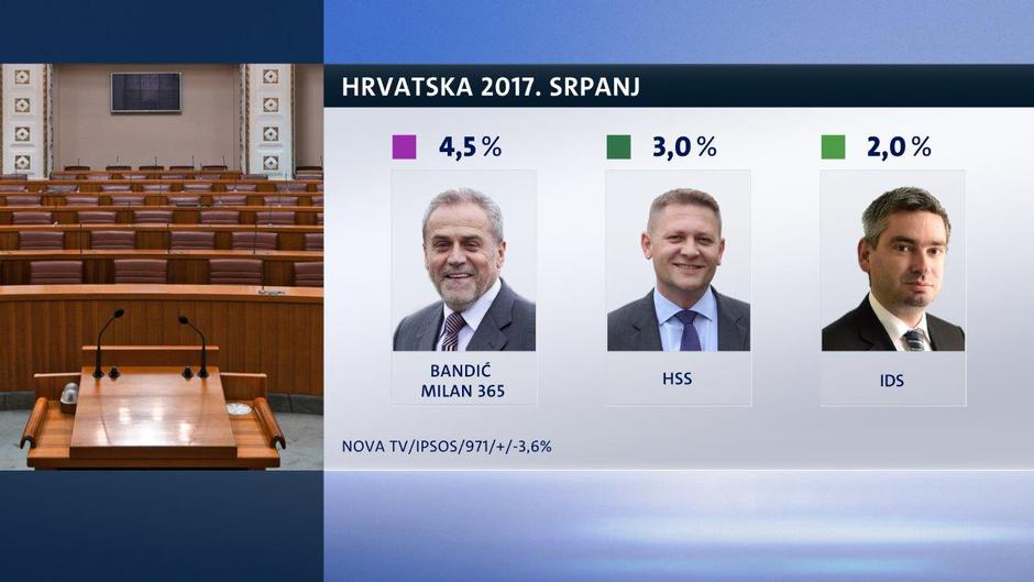 Stranka Milana Bandića 365 trenutačno uživa potporu od 4,5 posto birača. Slijedi je HSS s potporom od 3 posto, a regionalni IDS može računati na potporu od 2 posto, no u Istri je taj postotak zasigurno mnogo veći. HSU uživa potporu od 1,4 posto, Pametno, također, ima potporu birača od 1,4 posto. HNS, dio vladajuće koalicije, trenutačno može računati na potporu od 1,3 posto birača. A Promijenimo Hrvatsku Ivana Lovrinovića uživa jedan posto potpore.