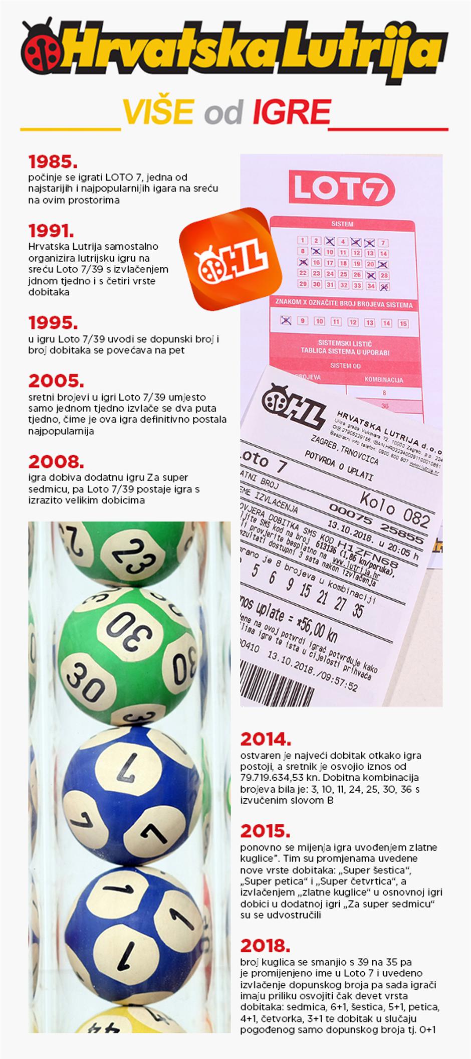 I pritom svatko ima svoj recept za sreću. Neki uvijek igraju istu kombinaciju brojeva, neki traže znakove i zaokružuju brojeve koji bi im mogli donijeti sreću, a neki na listićima zaokružuju rođendane svojim najmilijih. U Hrvatskoj je upravo LOTO 7, sa sretnim brojem 7 jedna od najstarijih i najpopularnijih igara na sreću. Sedmica se igra od 1985. godine, a od 15. listopada 1991. godine Hrvatska Lutrija samostalno organizira lutrijsku igru na sreću Loto 7/39. U sljedećih nekoliko godina, sve do ožujka 1995. igra se igrala tako što se jednom tjedno izvlačilo sedam brojeva, a igrači su mogli osvojiti četiri vrste dobitaka. Nešto kasnije uveden je dopunski broj i broj dobitaka se povećava na pet. Od 21. svibnja 2005. brojevi se izvlače dva puta tjedno, čime je Loto 7/39 definitivno postao vodeća i najpopularnija igra.