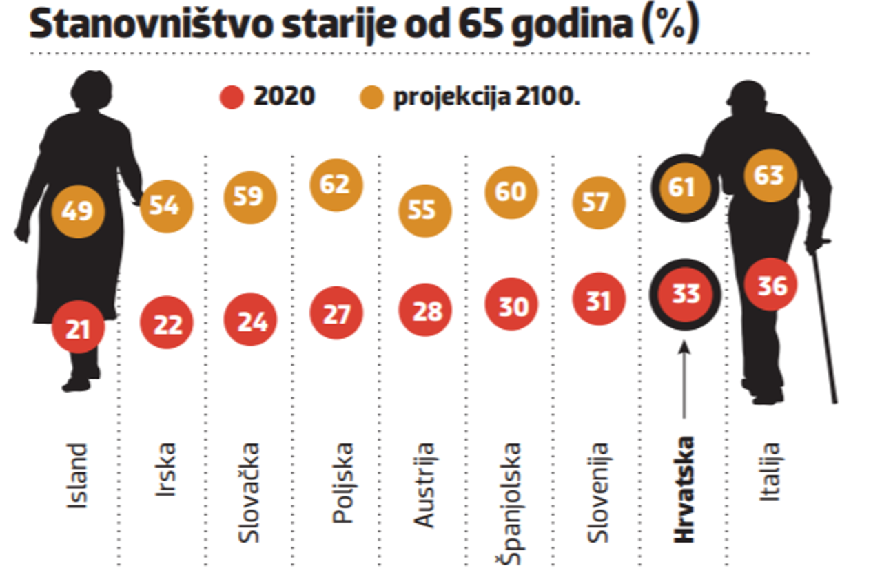 Starenje stanovništva najupečatljiviji je sociodemografski trend i Hrvatska će biti suočena s velikim projiciranim padom stanovništva do 2050. godine, a u okolnostima nedavnog intenzivnog iseljavanja mladog i radno aktivnog stanovništva. To znači da stariji ljudi sve više ostaju sami, bez izravne potpore obitelji.