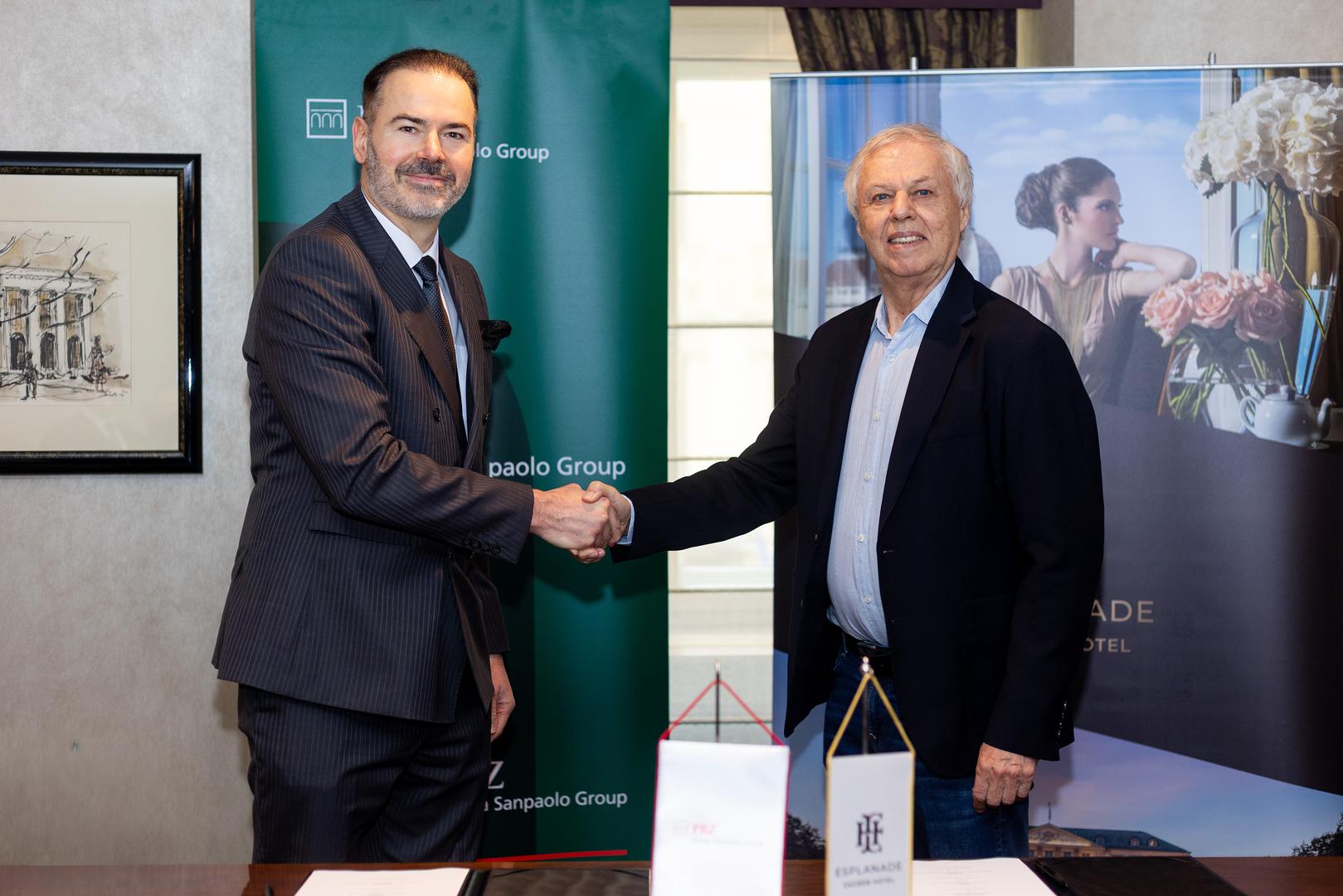 U hotelu Esplanade Zagreb danas je svečano potpisan ugovor o dugoročnom financiranju između Privredne banke Zagreb (PBZ), dio Sektora inozemnih banaka Intesa Sanpaolo i hotelske kuće Esplanade Oleander d.o.o., vlasnika i operatera kultnog hotela Esplanade. U ime PBZ-a ugovor je potpisao Dinko Lucić, predsjednik Uprave Banke, dok je potpisnik u ime hotela Herbert Haselbacher, predsjednik Uprave Esplanade i predsjednik Uprave austrijske WSF Grupe.