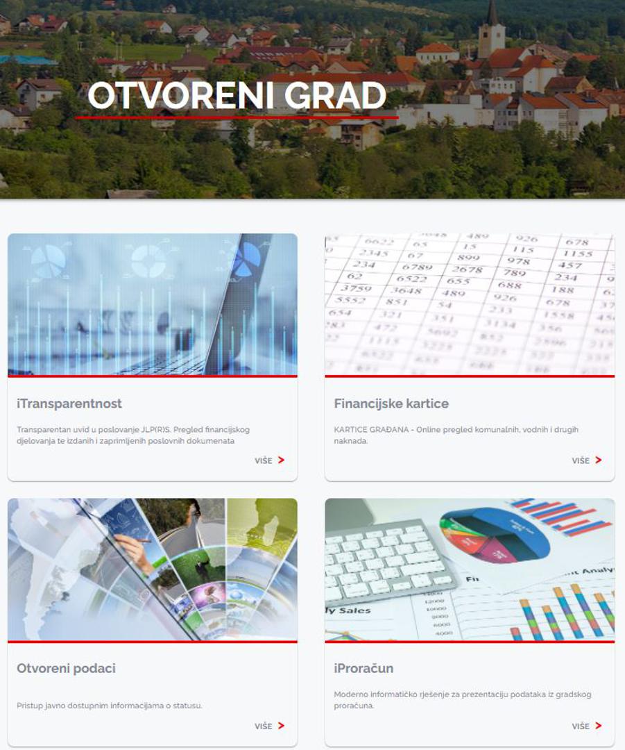 - iTransparentnost - transparentan uvid u poslovanje Grada. Pregled financijskog djelovanja te izdanih i zaprimljenih poslovnih dokumenata.
