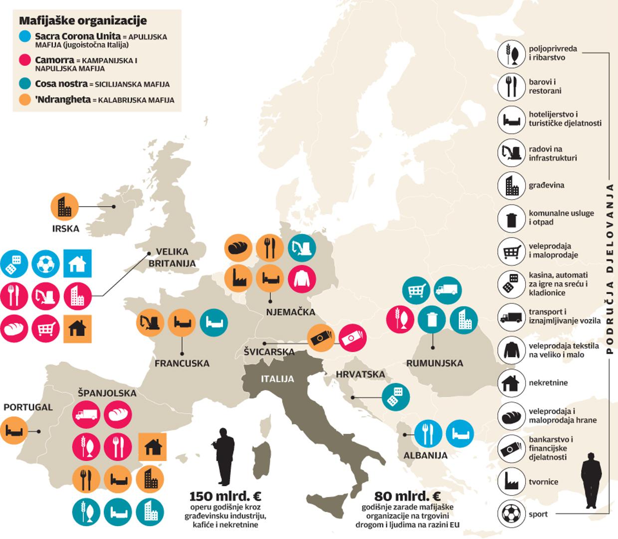 Barem tako pokazuju preliminarni rezultati istraživanja talijanskog istraživačkog centra Transcrime, koji pod pokroviteljstvom Europske komisije već dvije godine istražuje organizirani kriminalitet u Europi služeći se otvorenim izvorima, poput vladinih, medijskih i policijskih izvješća. Istraživanje koje će u konačnici završiti za mjesec dana u Bruxellesu je krajem rujna predstavio jedan od istraživača, profesor Ernesto Savona. Tom je prilikom upozorio na raširenost talijanske, kineske i ruske mafije te motociklističkih bandi koje trgovanjem drogom i ljudima na razini EU godišnje zarade više od 80 milijardi eura, a pranjem novca kroz ulaganje u građevinsku industriju, kafiće i nekretnine zarade i 150 milijardi eura. A zašto talijanska mafija u Hrvatskoj ulaže baš u kockarnice i koje su implikacije toga, objasnio je Željko Cvrtila, dugogodišnji kriminalist i bivši šef krim-policije.