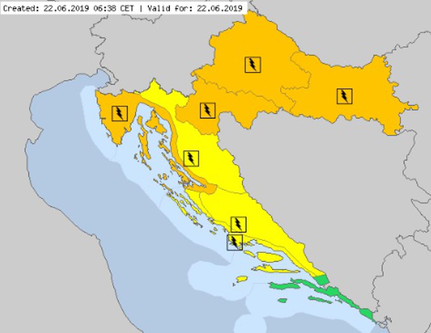 U gorskoj Hrvatskoj i na sjevernom Jadranu također vrlo nestabilno te od jutra oblačnije, a kako će dan odmicati, mjestimična kiša, pljuskovi i grmljavina bit će češći. Moguće je i jače nevrijeme praćeno tučom te olujnim vjetrom. Temperatura zraka bit će samo za koji stupanj niža.