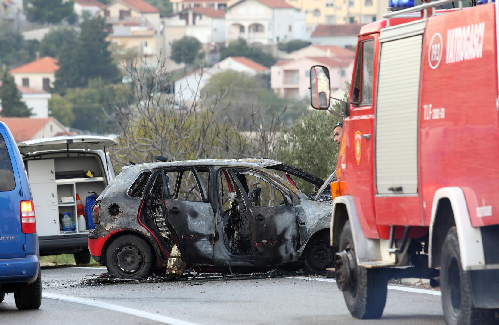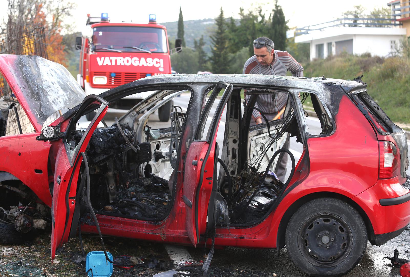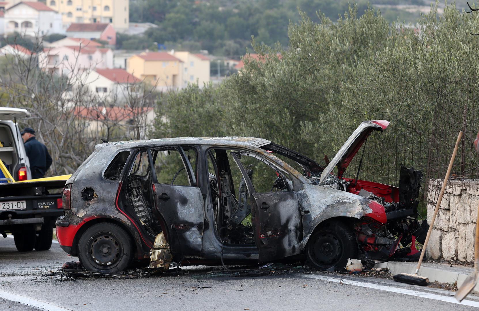 Stravična nesreća u Tisnom: Automobil izgorio nakon udarca u zid