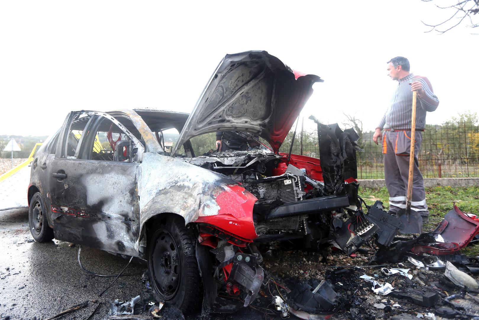 Automobil se zaletio u zid nakon čega je potpuno izgorio.