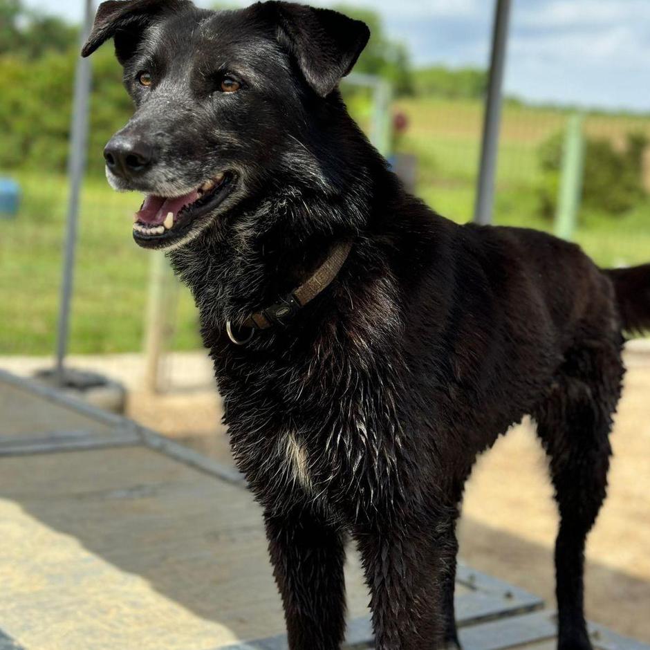 Teo je u sklonište stigao potpuno smrskane šapice, stao je na lovačku zamku, a zbog težine ozljeda sada ima tri noge. Bio je jako nepovjerljiv. Danas je aktivan, privržen pas. Savršen je u kući i nikad mu se nije dogodilo da obavi nešto što bi trebalo obaviti vani. Ne voli domaće životinje, a u društvu drugih mužjaka je dominantan pa treba vremena za dobar odnos.