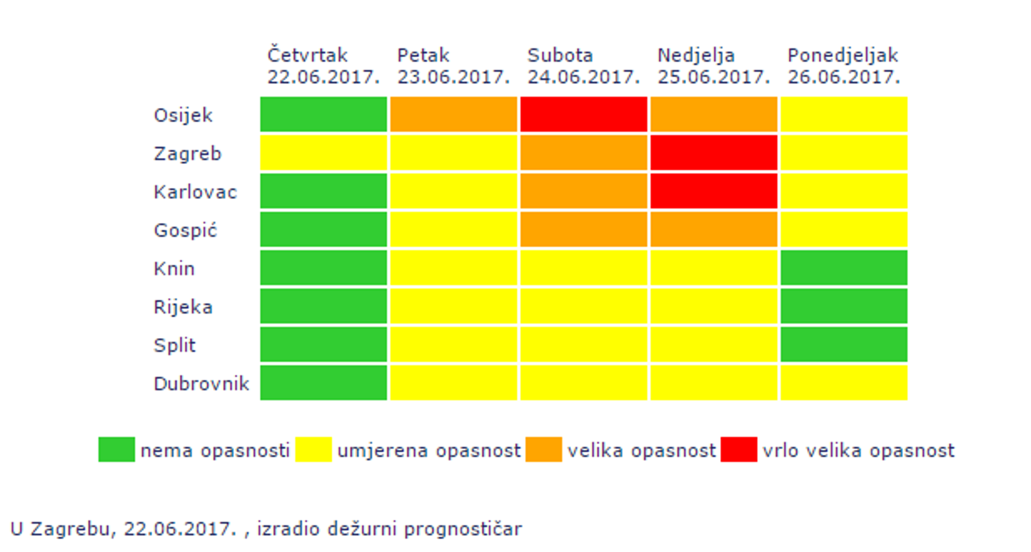 Što se tiče toplinskog vala u subotu postoji vrlo velika opasnost za Osijek, dok u nedjelju za Zagreb i Karlovac.