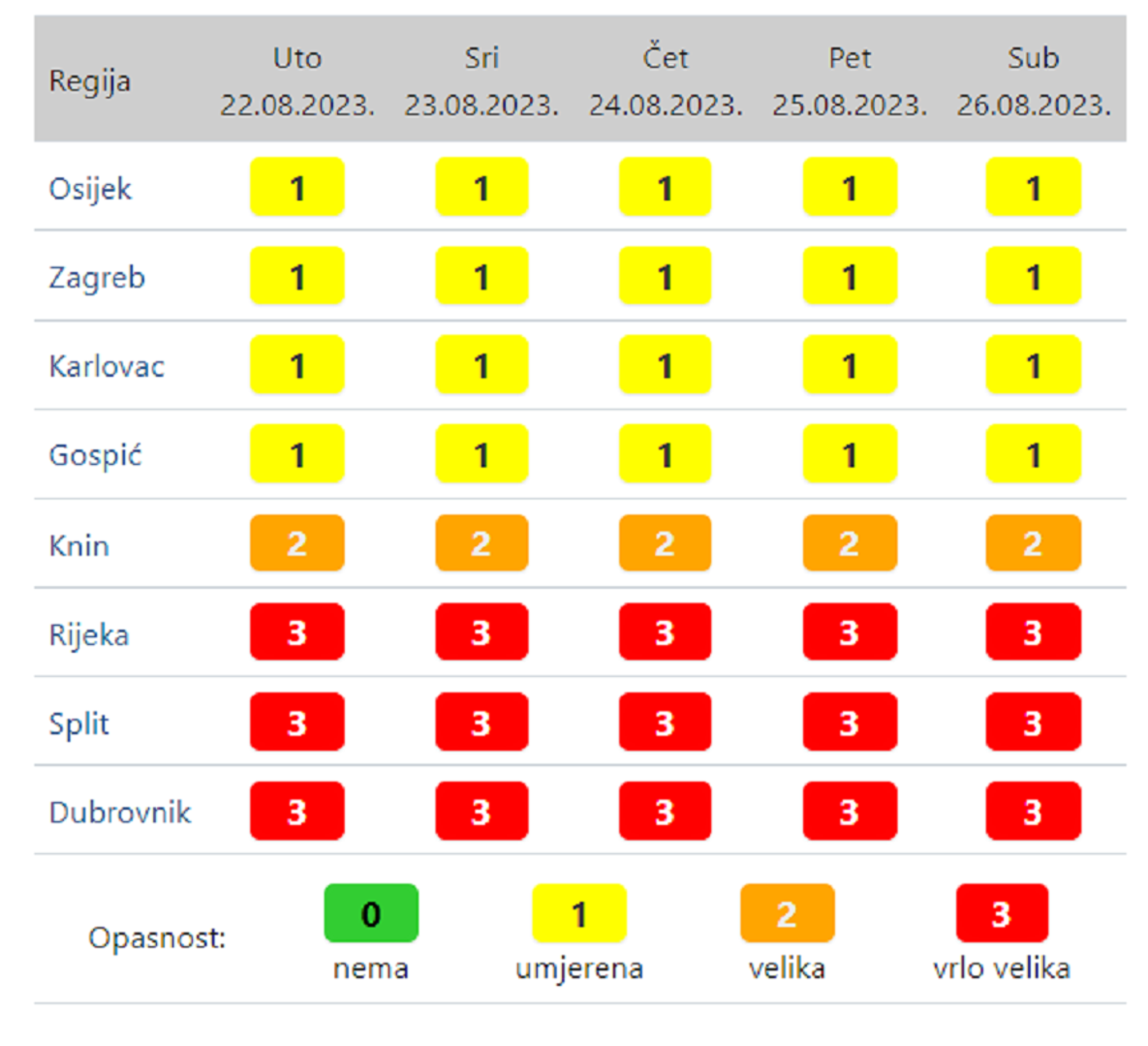 A vrućine neće popuštati, barem ne sutra, kada su na snazi isti meteoalarmi kao danas. Na Jadranu crveni, u unutrašnjosti Dalmacije narančasti, a na kontinentu žuti meteoalarm zbog ekstremnih temperatura i najniže dnevne temperature iznad 20 stupnjeva Celzijevih.